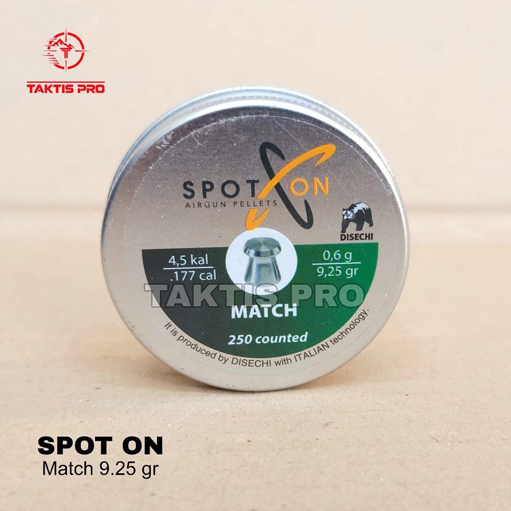 Spot On Match 9.25 gr adalah amunisi tipe kepala rata (wadcutter) yang didesain khusus untuk olahraga menembak target. Dengan berat yang ringan dan diameter 4.51mm yang konsisten, mimis ini sangat ideal digunakan pada senapan angin uklik maupun PCP untuk mendapatkan akurasi “satu lubang” pada jarak dekat hingga menengah.